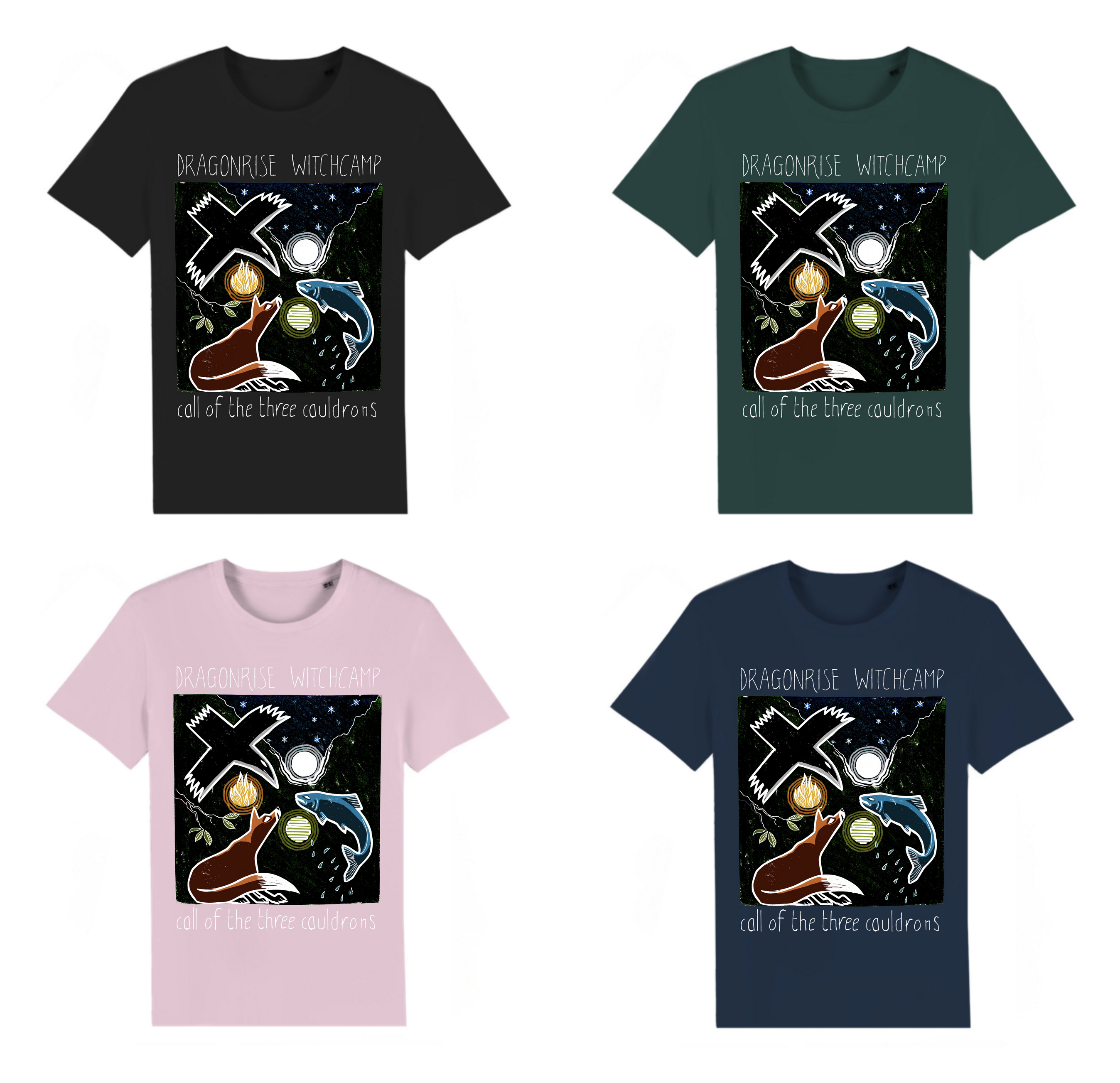 The black t-shirt is available from sizes XS to 5XL. The other colours – cotton pink, french navy and glazed green are available from XS to 3XL. Please state your chosen colour and size when ordering! Price includes postage.